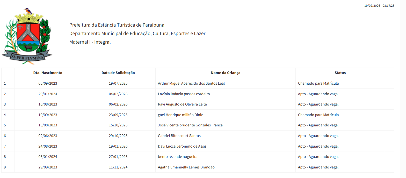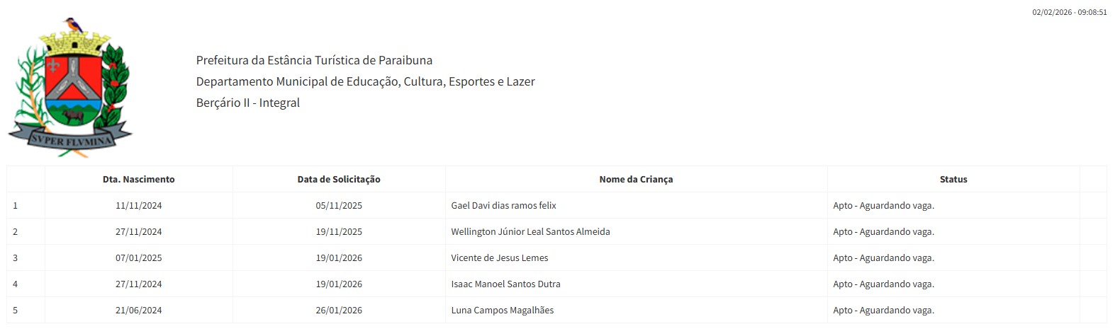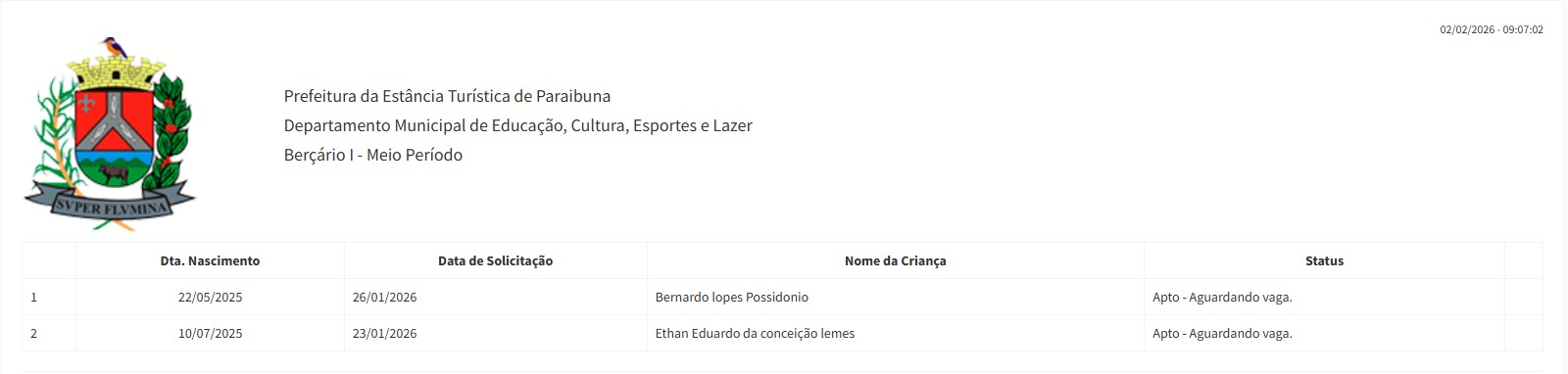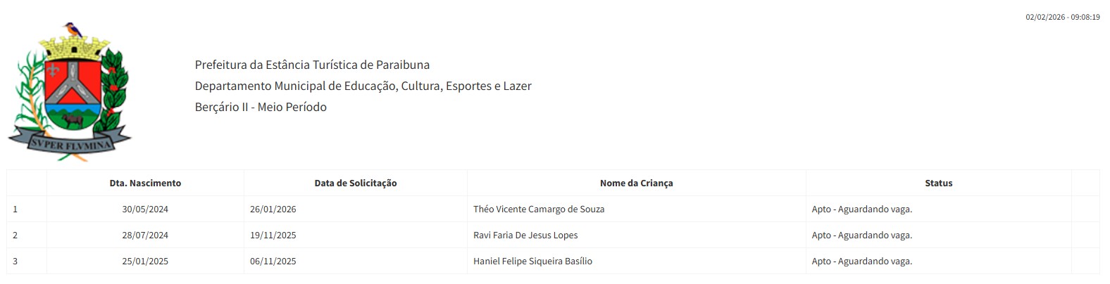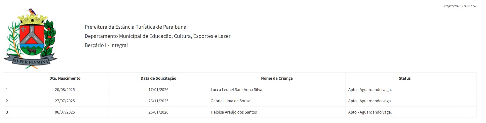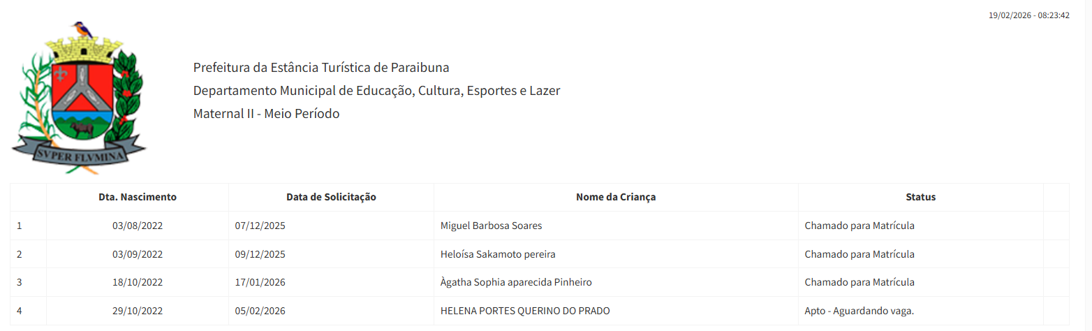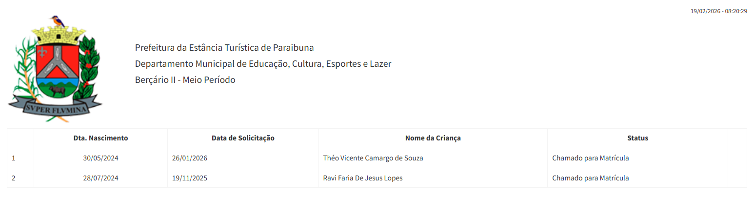 Berçário II integral (2ª parte - aguardando vaga) - julho 2024