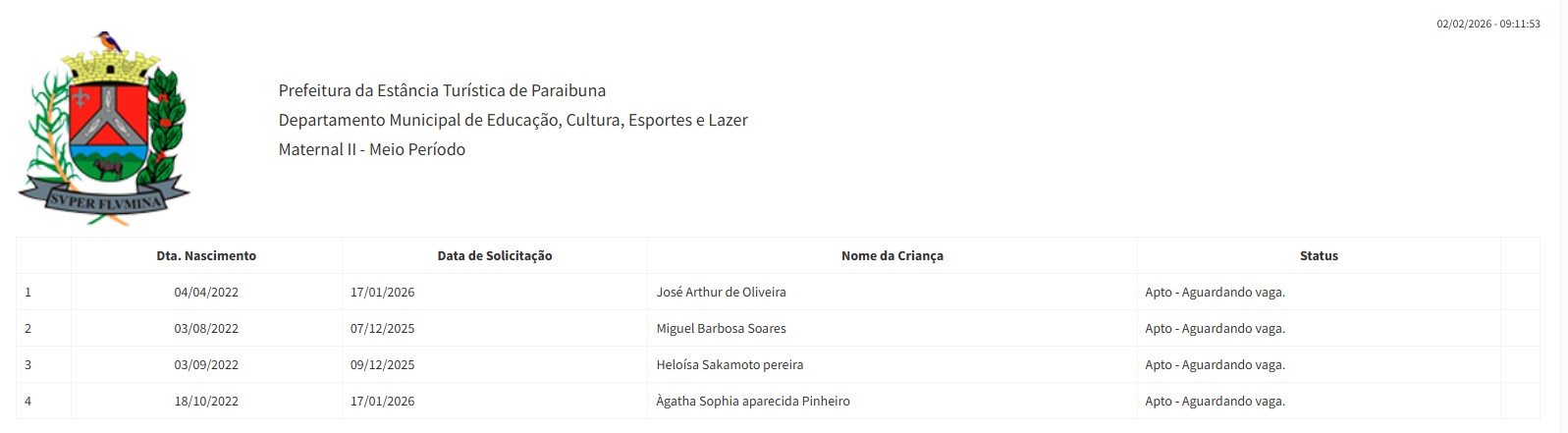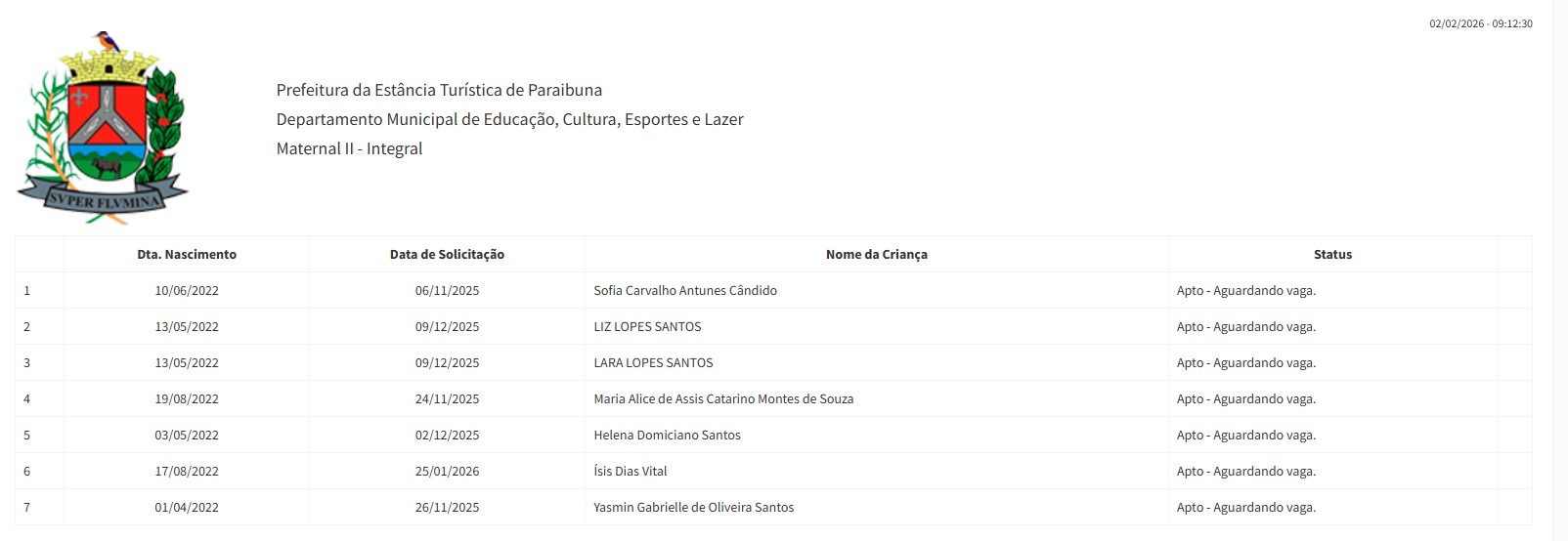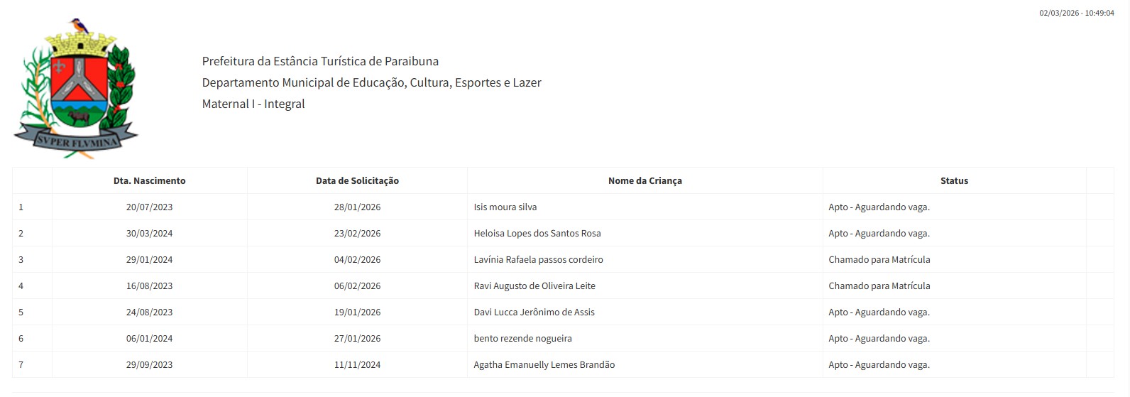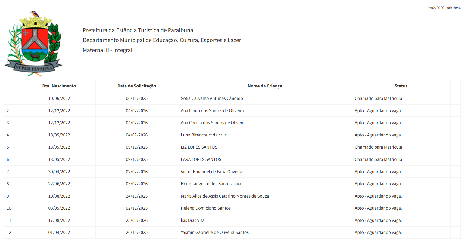 Berçário II integral (2ª parte - aguardando vaga) - julho 2024