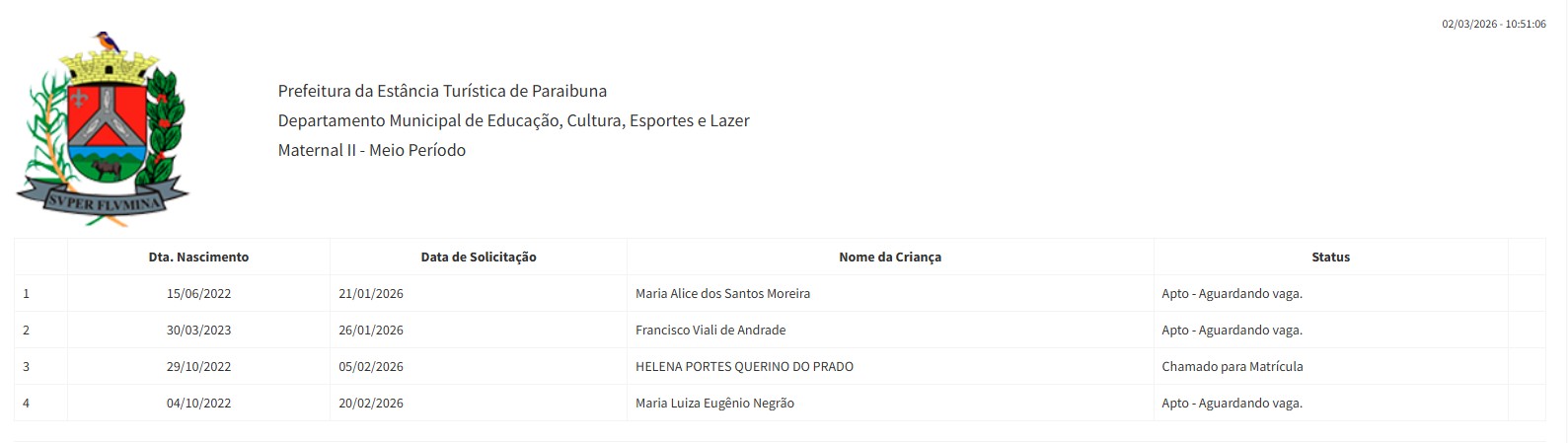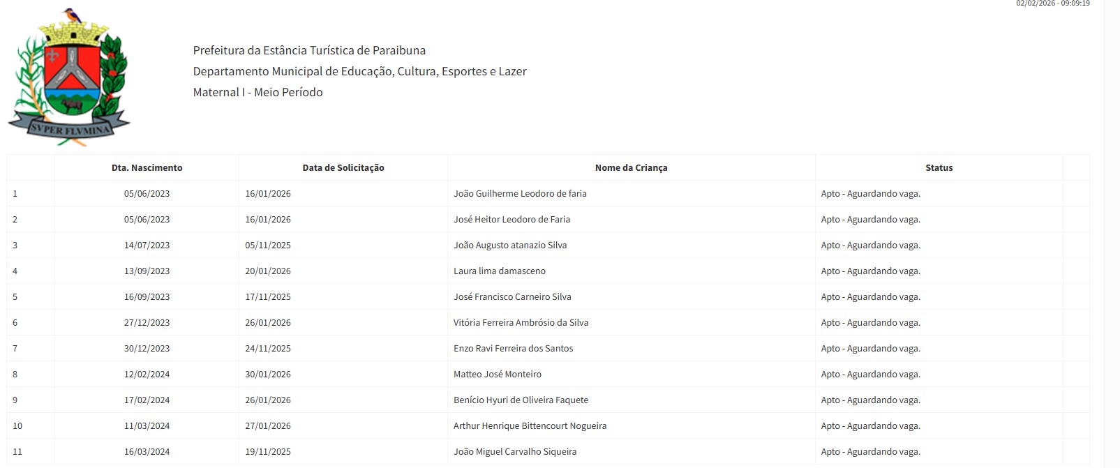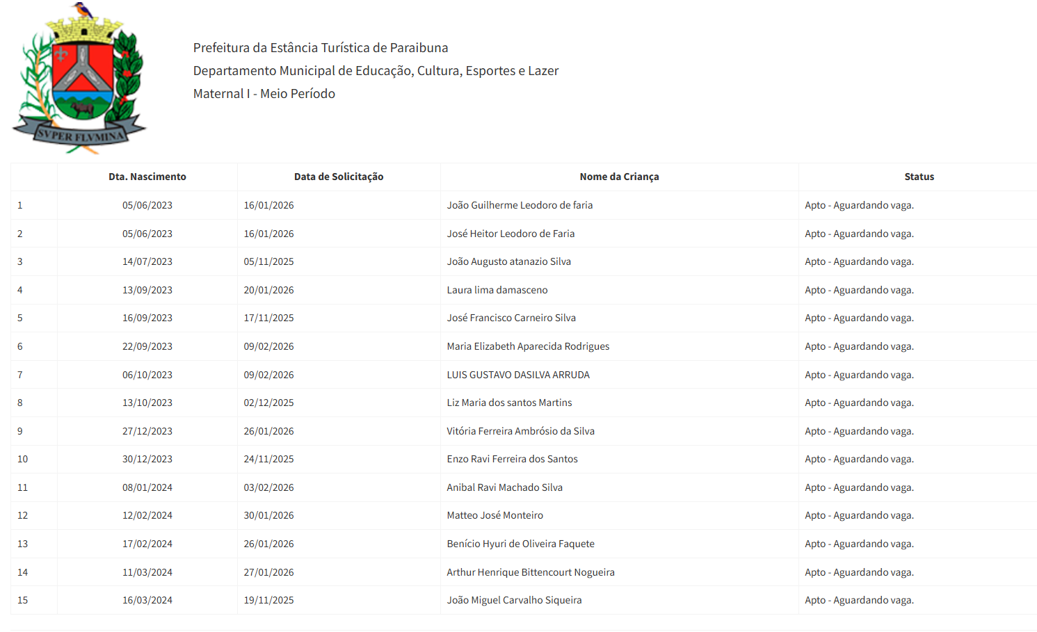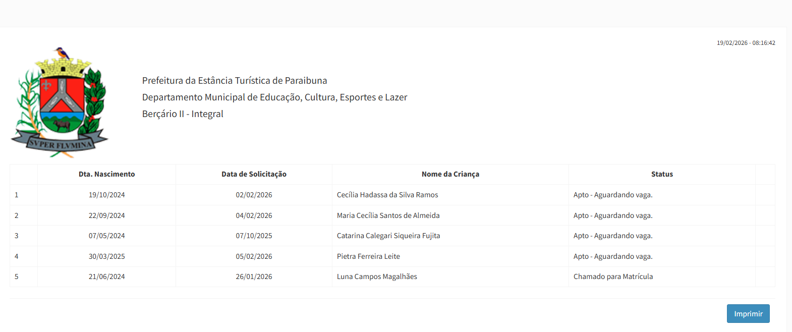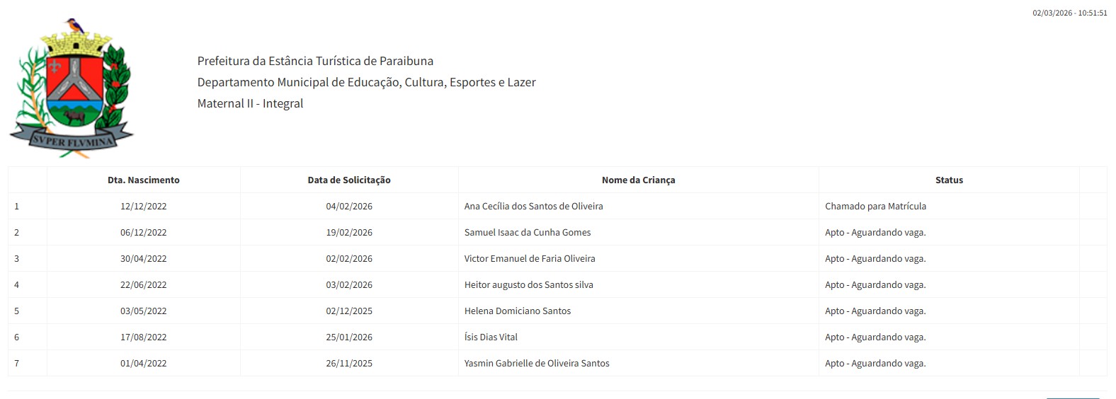 Berçário II integral (2ª parte - aguardando vaga) - julho 2024