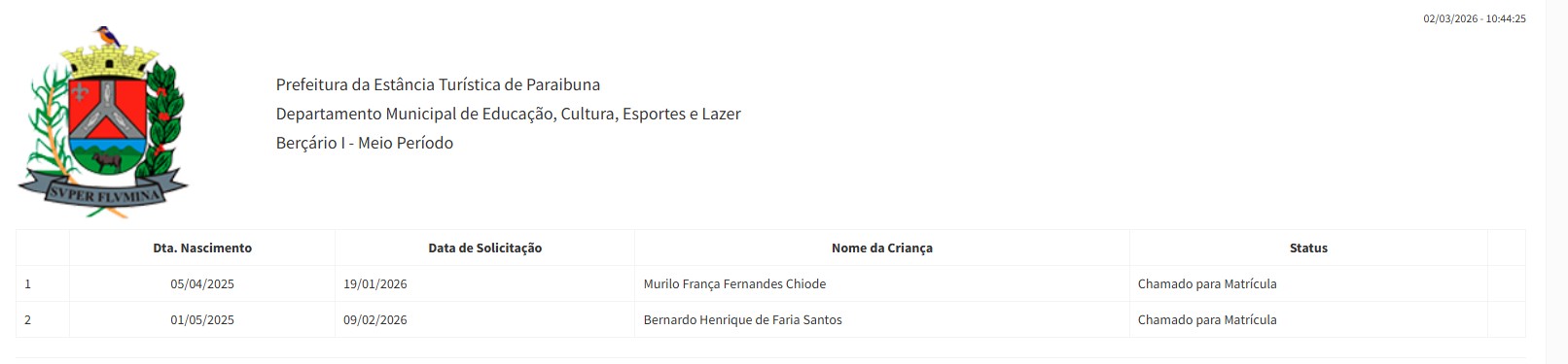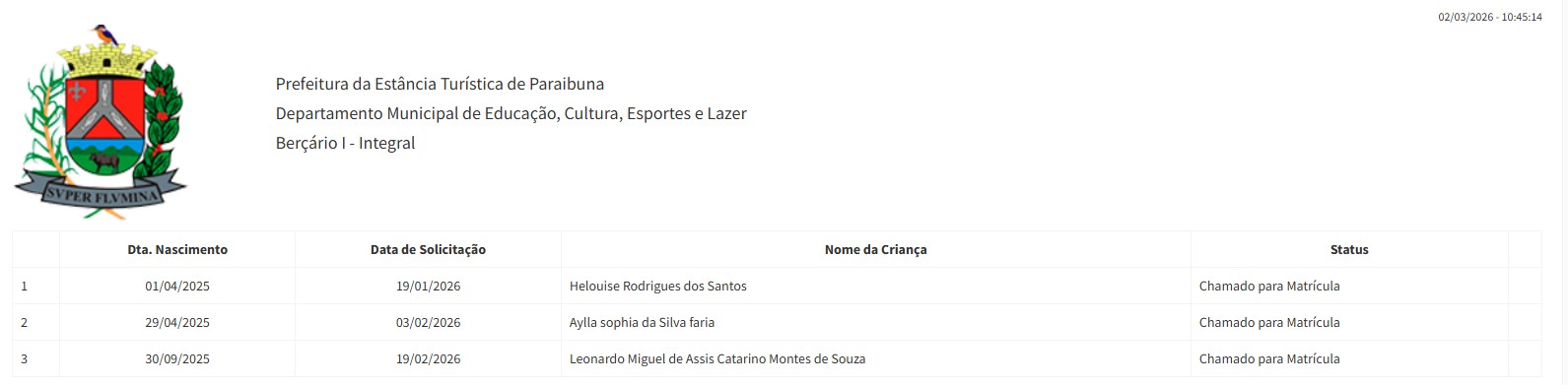 Berçário I parcial - março 2025