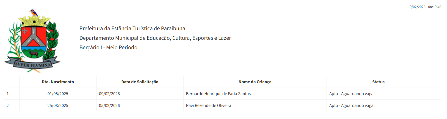 Berçário I parcial - julho 2025