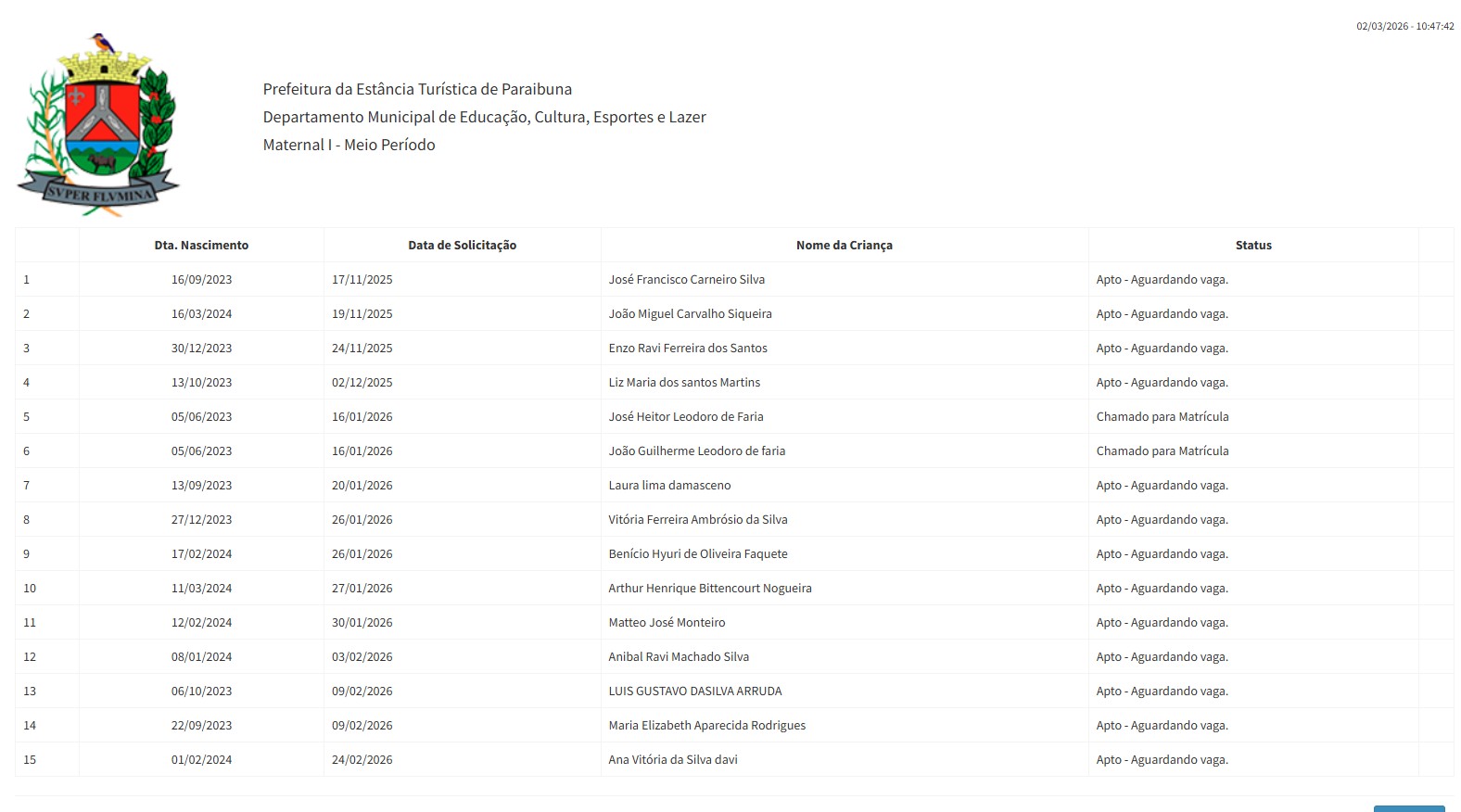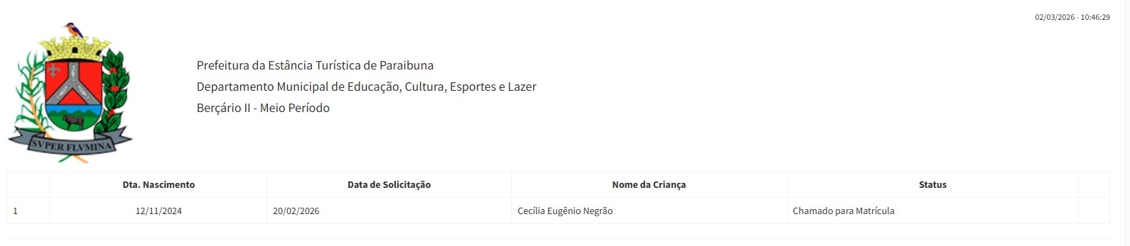 TRIAGEM CRECHE MUNICIPAL