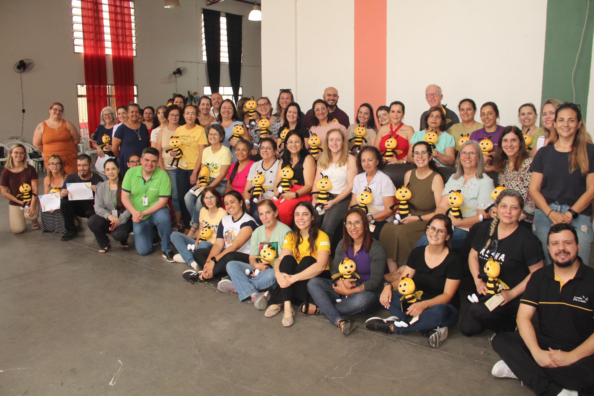 Os educadores receberam certificados e a tradicional abelhinha de pelúcia — símbolo que reforça valores como cooperação, trabalho em equipe, protagonismo e cidadania.