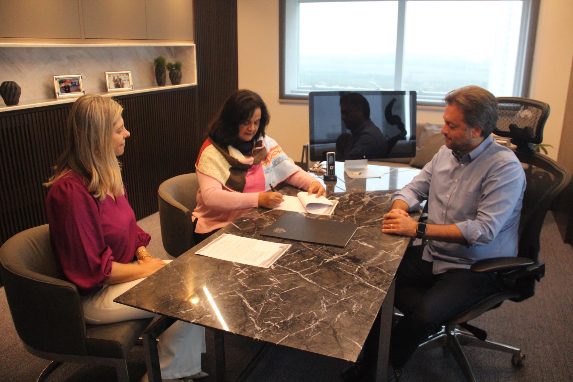 Também participaram da assinatura do contrato a chefe de Gabinete, Heloísa Antunes de Faria Santos, e a gestora de Marketing da Nip BR, Ciça Pinheiro.