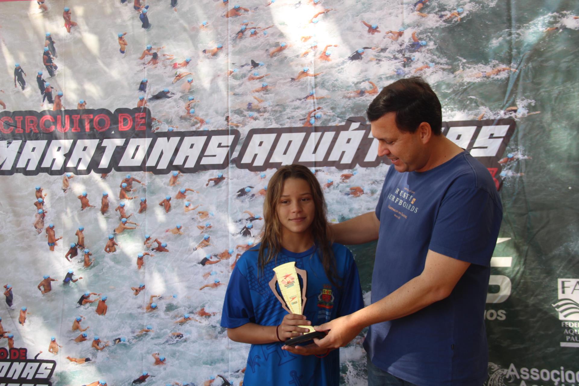 Bruna Serra Oliveira, também de Paraibuna, é moradora do Centro e faz natação há 3 anos. Ela disse que é a primeira vez que participa do circuito e que o principal objetivo seria finalizar a prova de 800 m. Ao final da competição, a atleta foi coroada com o 1º lugar da categoria dela.