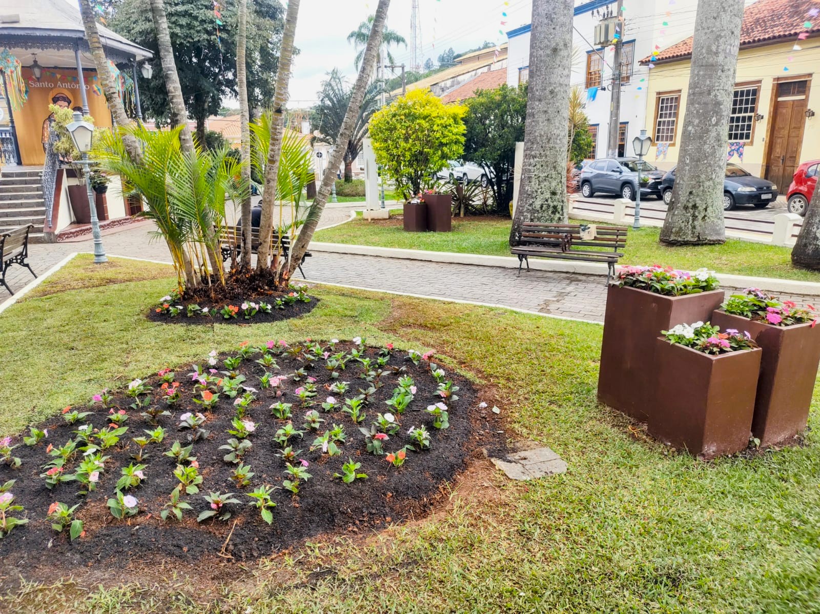 Novas flores deixa a Praça da Matriz com ambiente mais harmonioso e agradável, no Centro de Paraibuna