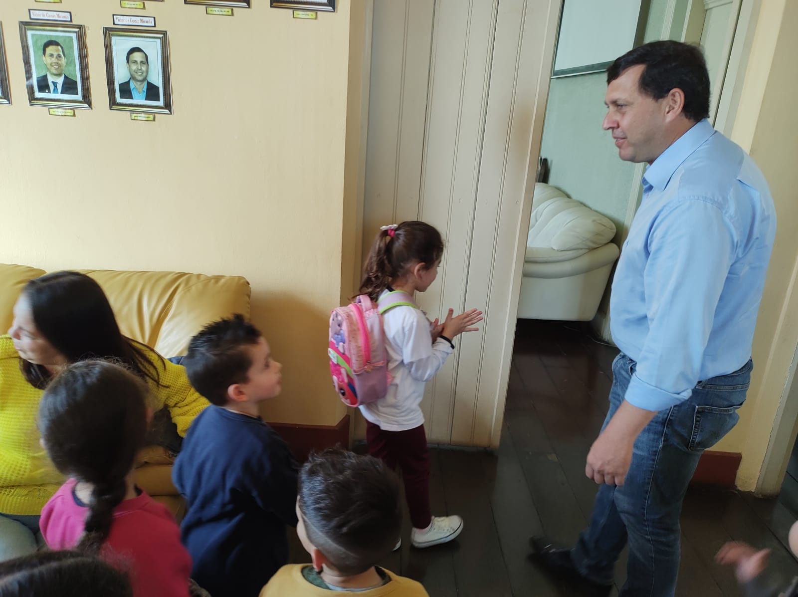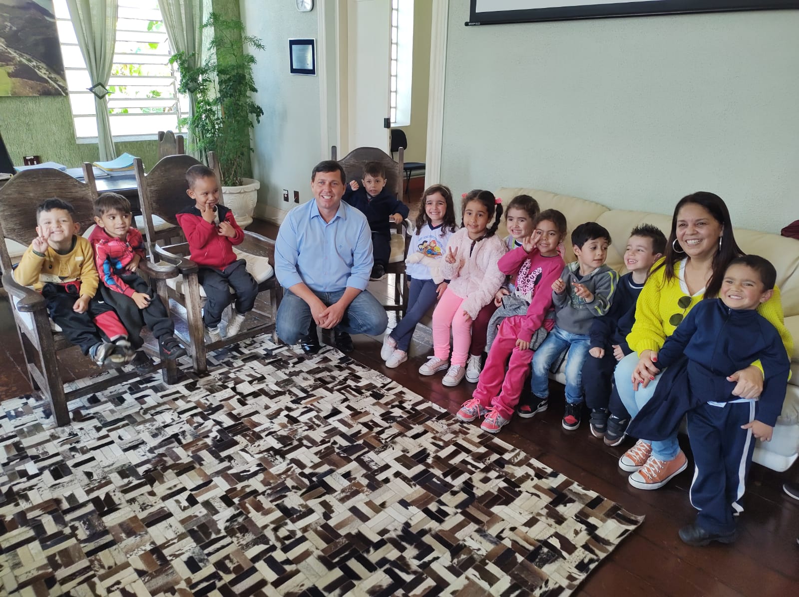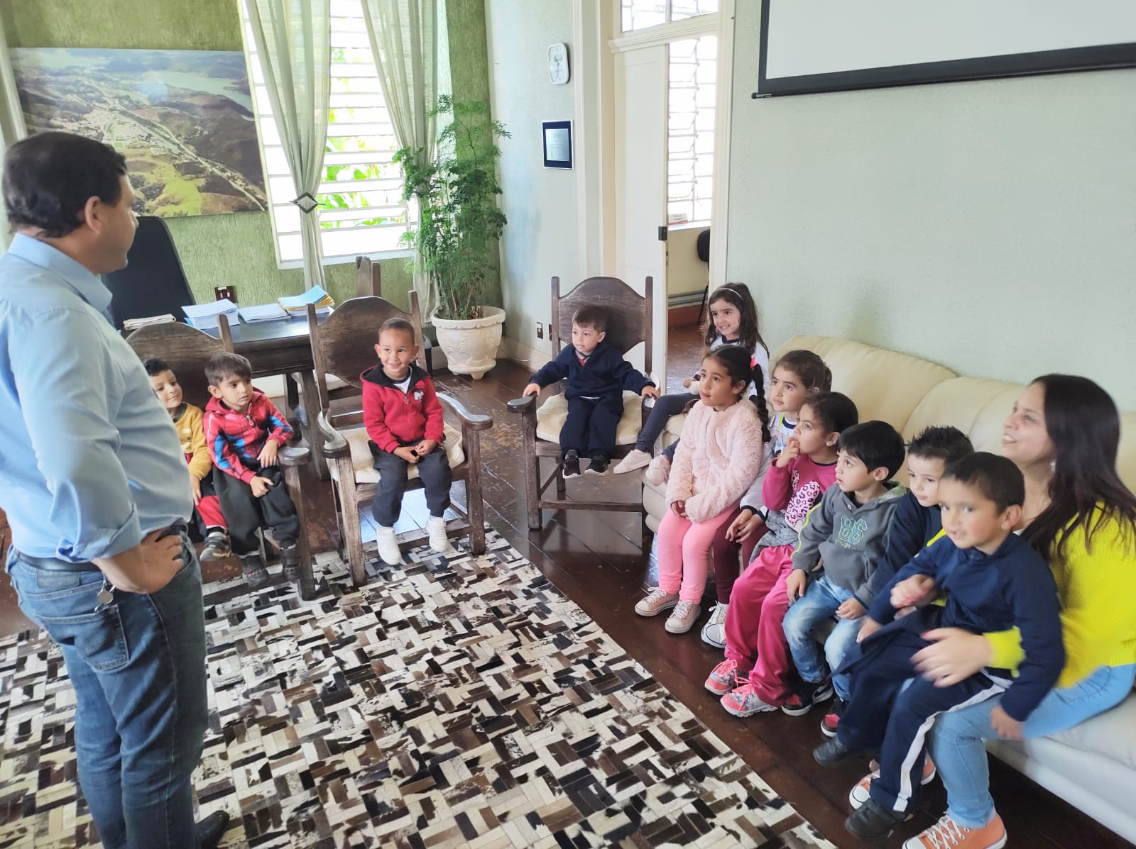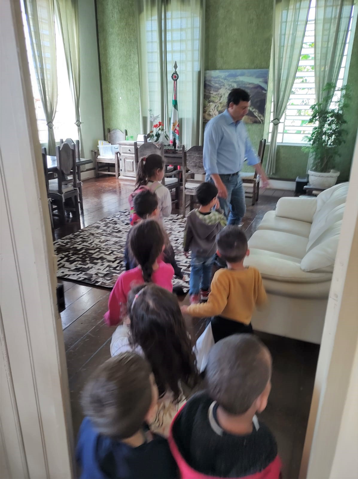 Em visita ao prédio histórico do Paço Municipal, crianças foram recepcionadas pelo prefeito.