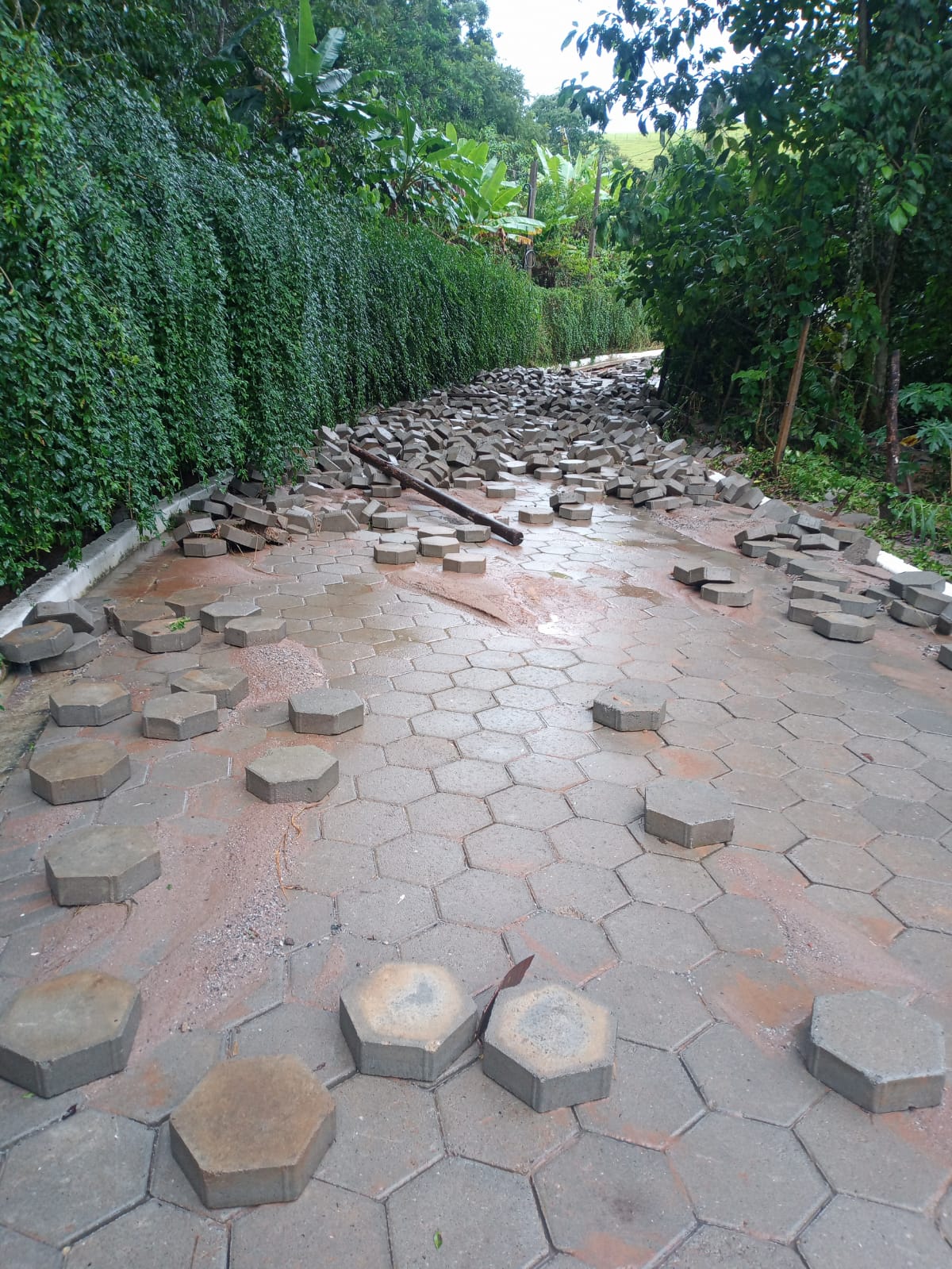 O temporal gerou grandes enxurradas causando quedas de barreiras e de árvores na cidade e em diversos pontos da zona rural do município, como na estrada municipal do bairro Capim D’angola, onde uma parte da via cedeu a abriu uma cratera na lateral da estrada. Outros locais também foram afetados pelas chuvas e tiveram de ser interditados, sendo liberados após a desobstrução realizada pelas equipes do Departamento de Serviços Municipais. Entre os locais já liberados para o trânsito estão as estradas municipais dos bairros do Porto, Espírito Santo, Capim D’angola, e a estrada dos Pinheiros. De acordo com o Departamento de Serviços Municipais, por enquanto a estrada da Fazenda São Pedro continua interditada e, por isso, a recomendação é que os usuários evitem o local.