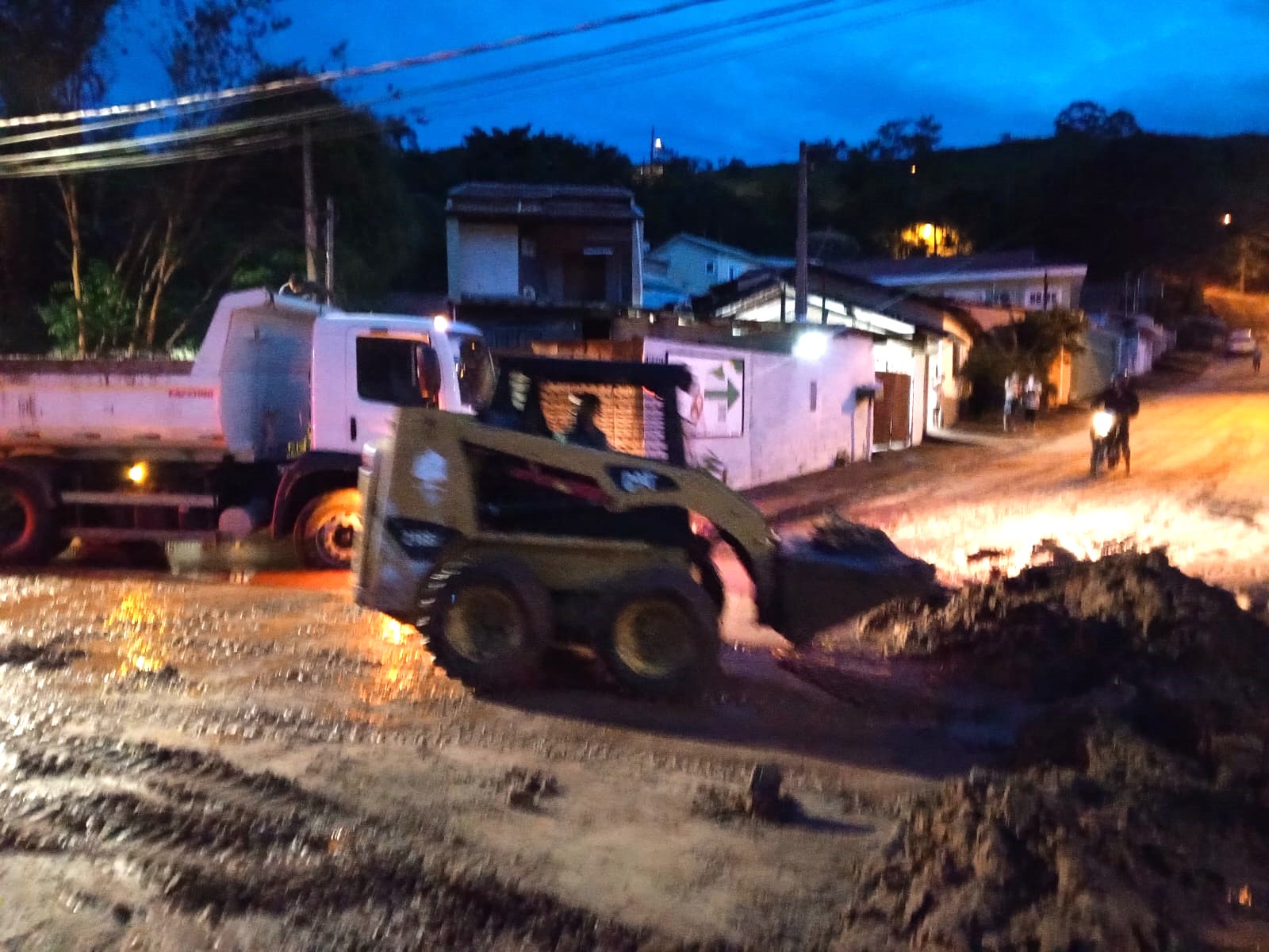 Prioridade, nesse primeiro momento, foi a desobstrução de estradas e assistência aos munícipes que tiveram suas casas inundadas, principalmente na Vila de Fátima.