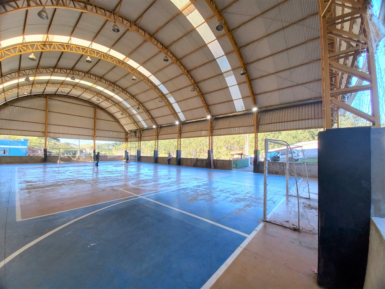 - Iluminação da quadra de esportes do bairro do Teles, e instalação de rede de proteção / Troca de rede na quadra de futebol Society da Vila Amélia;